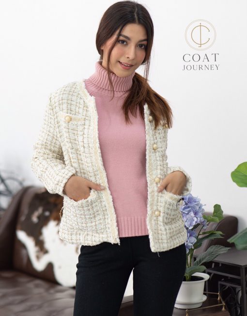 เสื้อคลุมผ้าทวีต สไตล์เรียบหรูไฮโซ เหมาะสำหรับอุณหภูมิราวๆ 10-27 องศา ตกแต่งกระเป๋าข้างเก๋ๆ 2 ด้านน่ารักมาก